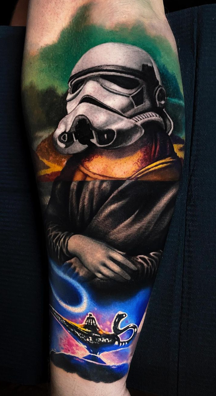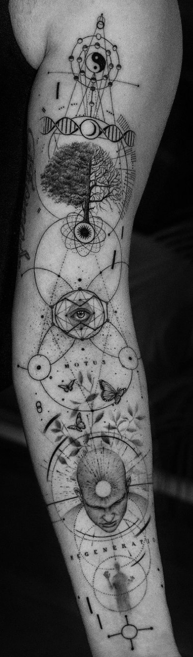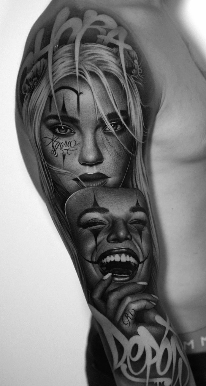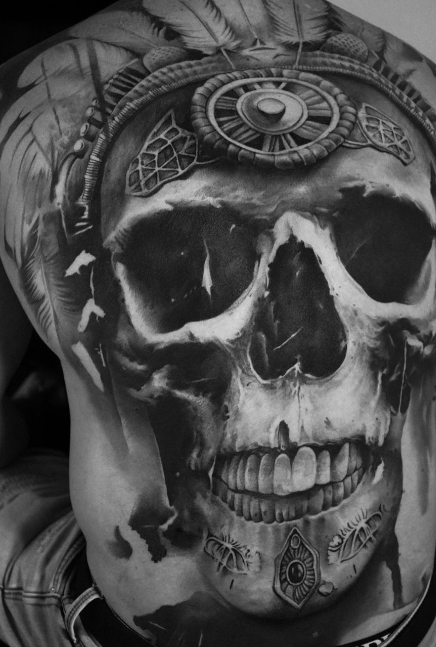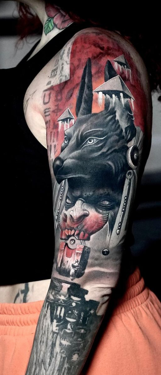 Mumia aus Portugal. Nachdem er zwei Jahre lang als Tätowierer unterwegs war, beschloss er sich in Kopenhagen, Dänemark niederzulassen, wo er seit dem Jahr 2015 lebt. Mumia ist spezialisiert auf dunkel getönten schwarzen und grauen Surrealismus und arbeitet hauptsächlich in einem undefinierten Gebiet zwischen Realität und Fantasie, Träumen und Albträumen. Die Kombination aus seinem lebensechten Stil und seltsamen Motiven führt zu rätselhaften und bewegenden Körperkunstwerken, in denen Schönheit und Dunkelheit harmonisch koexistieren.