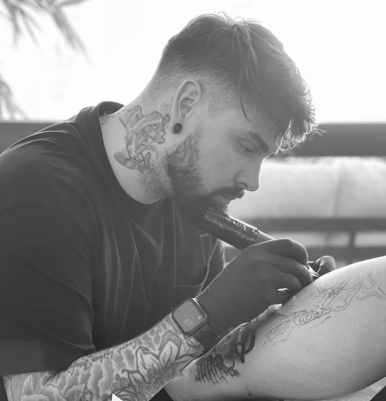 Aus Coimbra in Portugal. Ca. im Jahr 2017 wurde aus kleinem Spass dann plötzlich ernst und da wurde das Tätowieren zu seiner Leidenschaft. Er ist sehr perfektionistisch und detailorientiert, weshalb sein Stil mikrorealistisch/geometrisch ist. Auf seine Kreationen reagieren die Leute sehr positiv überrascht.